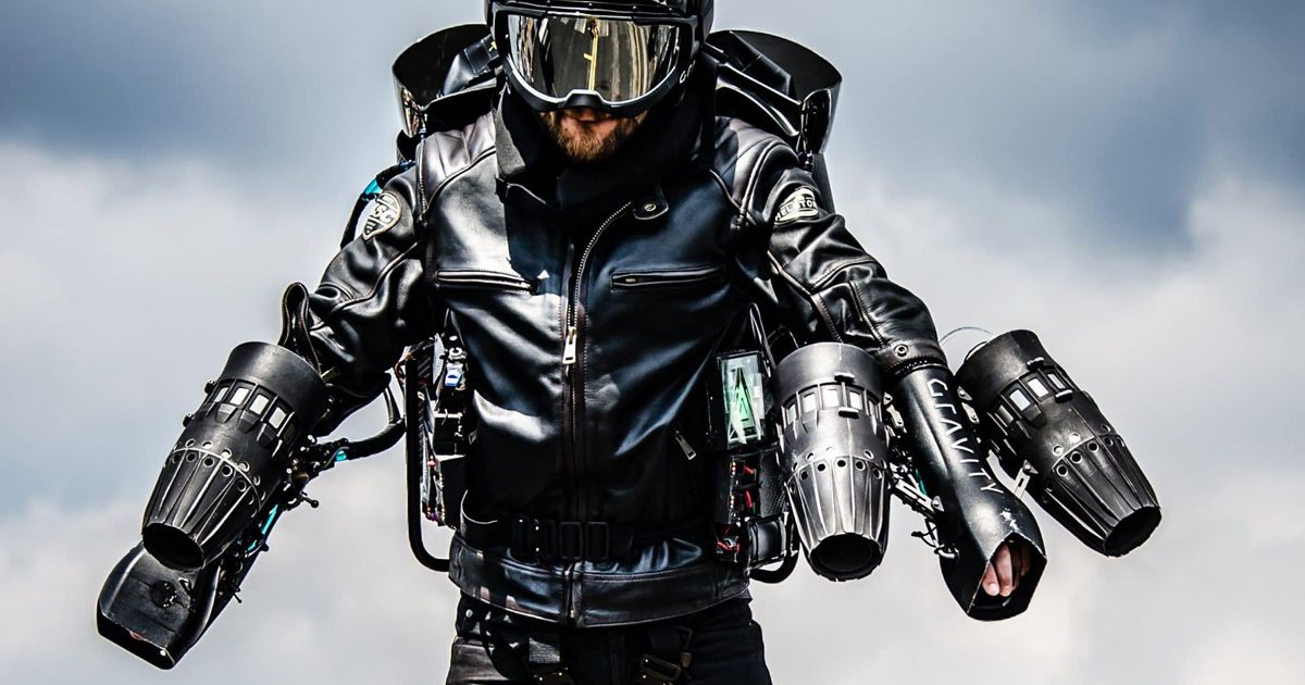 O inventor britânico Richard Browning, fundador e piloto de testes-chefe da Gravity Industries, criou um "traje a jato" com motor a jato de 1.050 HP para os fãs de voos tripulados solo.