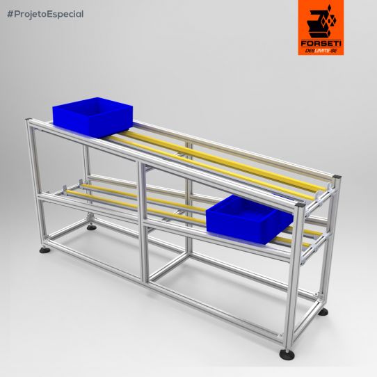 Esteiras, postos de trabalho e demais estruturas para auxiliar na ergonomia e processos de posto de trabalho.